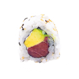 Roll invertit amb l'arròs a l'exterior farcit d'alvocat,...